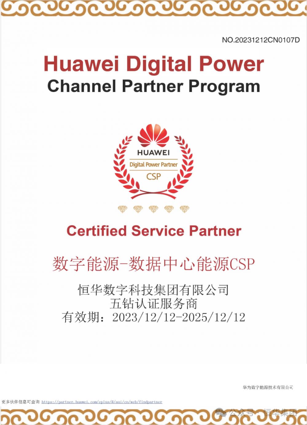 本次签约,是恒华公司落实中长期战略规划的重要举措,双方就“中国数字能源新生态”领域,在数据中心、渠道产品、智能充电网络、光伏等方面的合作模式进行探讨并达成一致意向。在与会领导的共同见证下,姚文斐、张超代表恒华与华为签署合作目标协议;陈光、刘彦春代表双方进行了“CSP五钻”授牌,恒华正式成为华为“数字能源——数据中心能源CSP五钻认证服务商”。